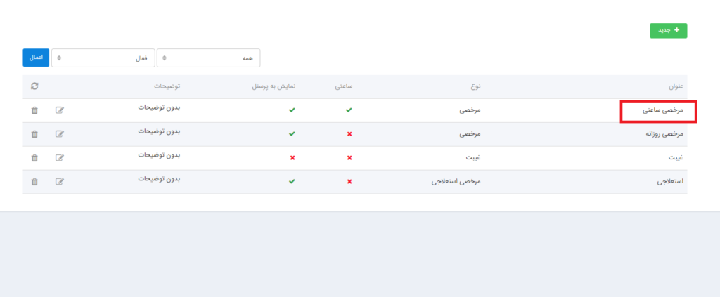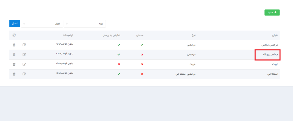 مرخصی هایی که کارمند در طول یک ماه یا یک دوره به صورت روزانه استفاده میکند مرخصی روزانه می گویند.