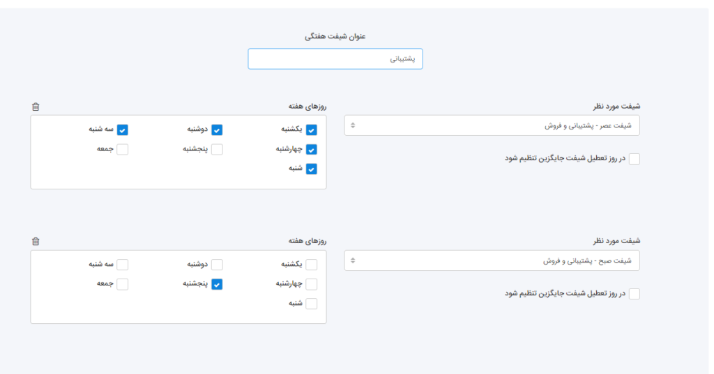 ایجاد شیفت هفتگی