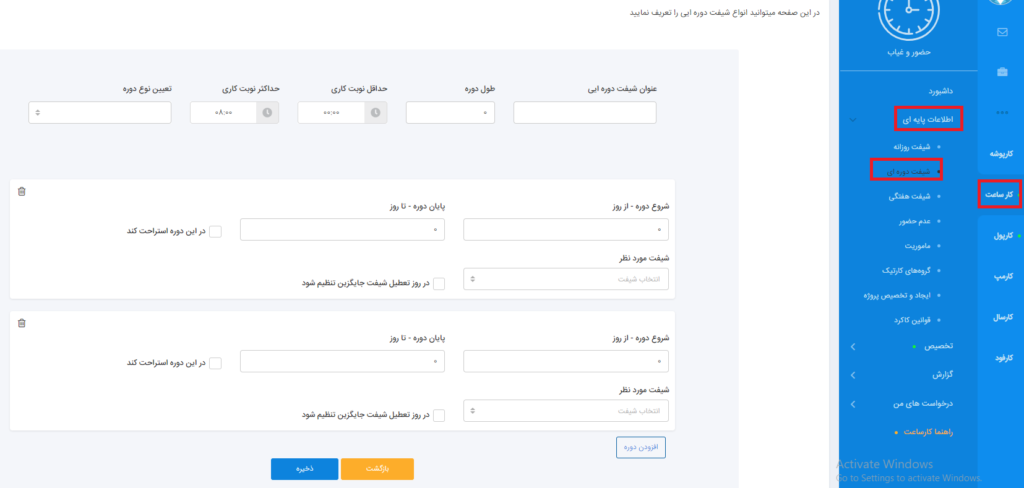 یکی از پرکاربردترین انواع شیفت کاری، شیفت چرخشی یا گردشی است. در این شیفت، یک بازه زمانی جهت ورود و خروج تعریف شده و این بازه زمانی به صورت منظم تکرار میشود.