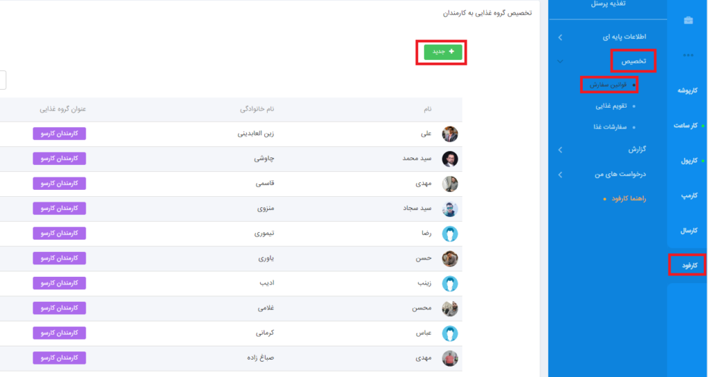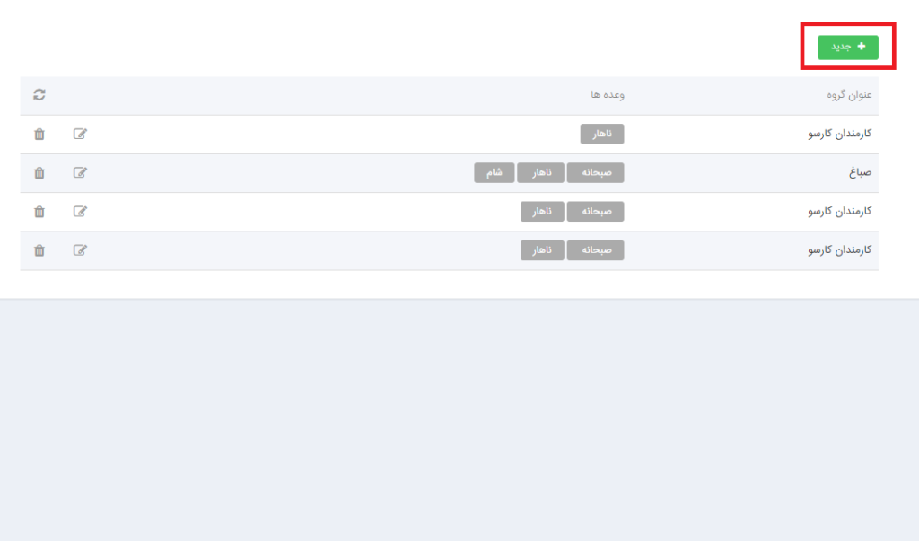 برای درج سفارش جدید برای کارمندان به صورت گروهی بر روی جدید کلیک کنید.
