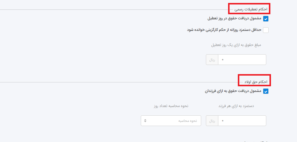 اگر کارمند مشمول دریافت حقوق در روز تعطیل می شوند باید مبلغ ان را مشخص کنید.