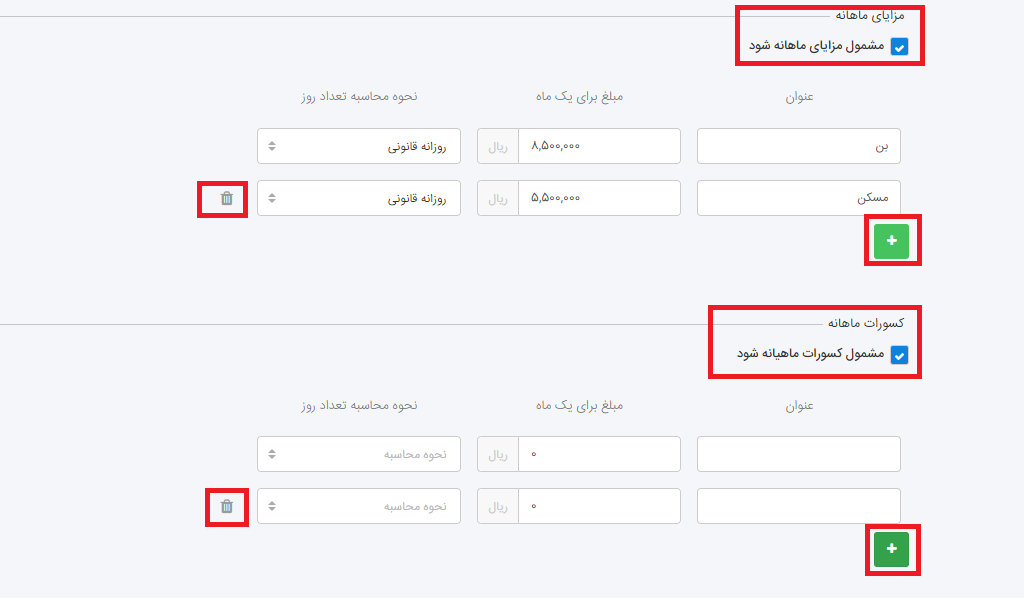 همچنین مزایایی که به هر کارمند اختصاص پیدا میکند با عددی ثابت نمایش داده شود یا خیر.