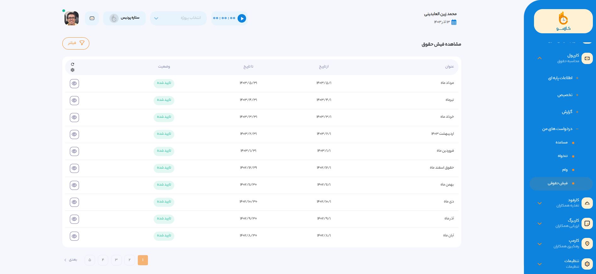کارمندان شما به راحتی می توانند در پنل خود فیش حقوقشان را طبق ساعت کاری ای که داشته اند مشاهده کنند. این قابلیت به صورت ماهانه نیست، کارمندان هر روز می توانند کارکردشان را تا آن روز به صورت روزانه یا ماهانه مشاهده کنند.طبیعی است که با استفاده از نرم افزار حقوق و دستمزد کارسو کارهای حسابداری شما بسیار سبک خواهد شد. نرم افزار حقوق و دستمزد به طور دقیق حقوق کارمندان شما را محاسبه می کند و فیش حقوقی آنها با تمامی اطلاعات مورد نیاز از جمله کسری بیمه، کسری کار، پاداش و مزایا، اضافه کاری، ماموریت و... صادر می شود.با محاسبه حقوق کارمندان در نرم افزار حقوق و دستمزد آنلاین دیگر نه کارمندان اعتراضی در محاسبه حقوقشان دارند نه کارفرما تردیدی دارد که محاسبه حقوق به درستی انجام شده یا خیر. زیرا هم مدیر هم کارمند به صورت آنلاین تمامی محاسبات را می توانند داخل پنل شخصی خود در نرم افزار حقوق و دستمزد مشاهده کنند.