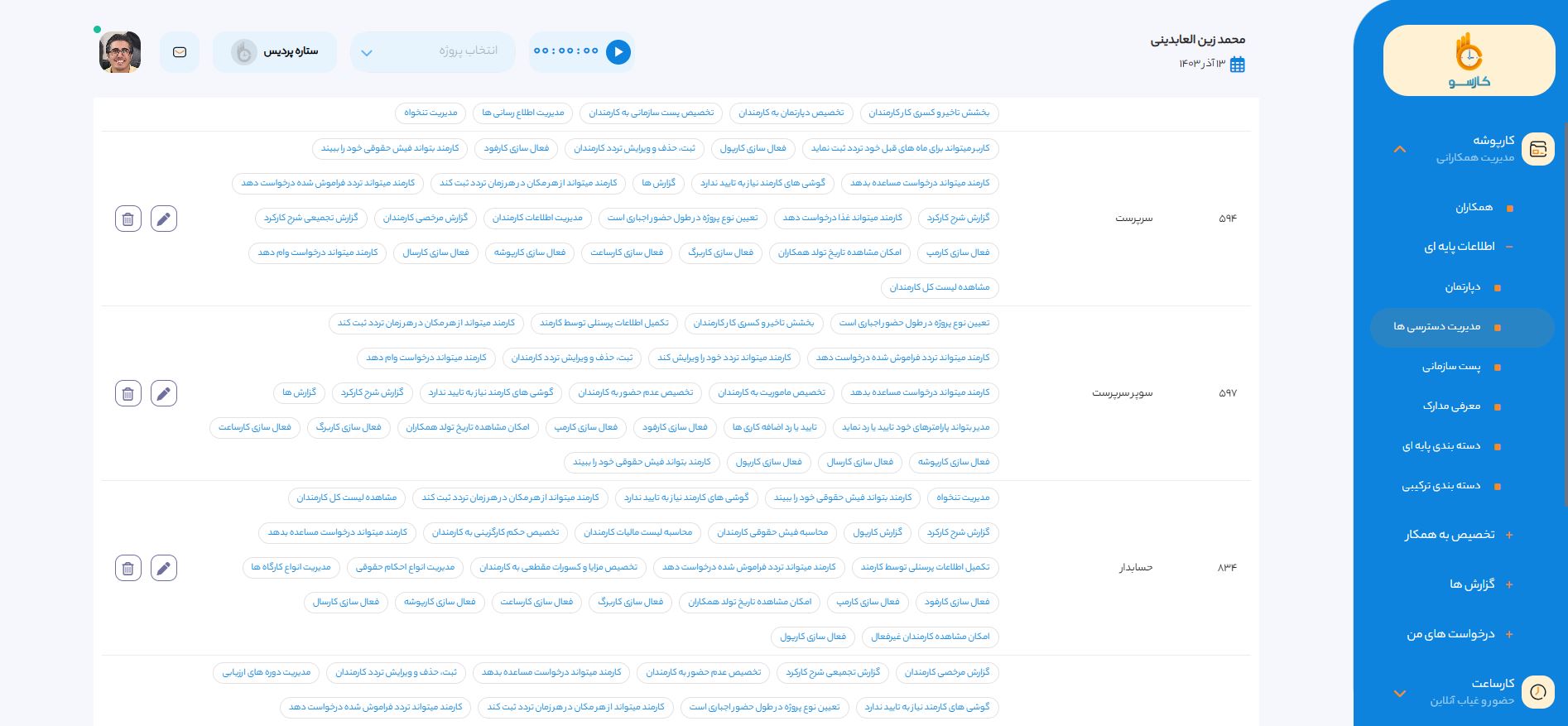 سطوح دسترسی کارکنان در سامانه پرسنلی