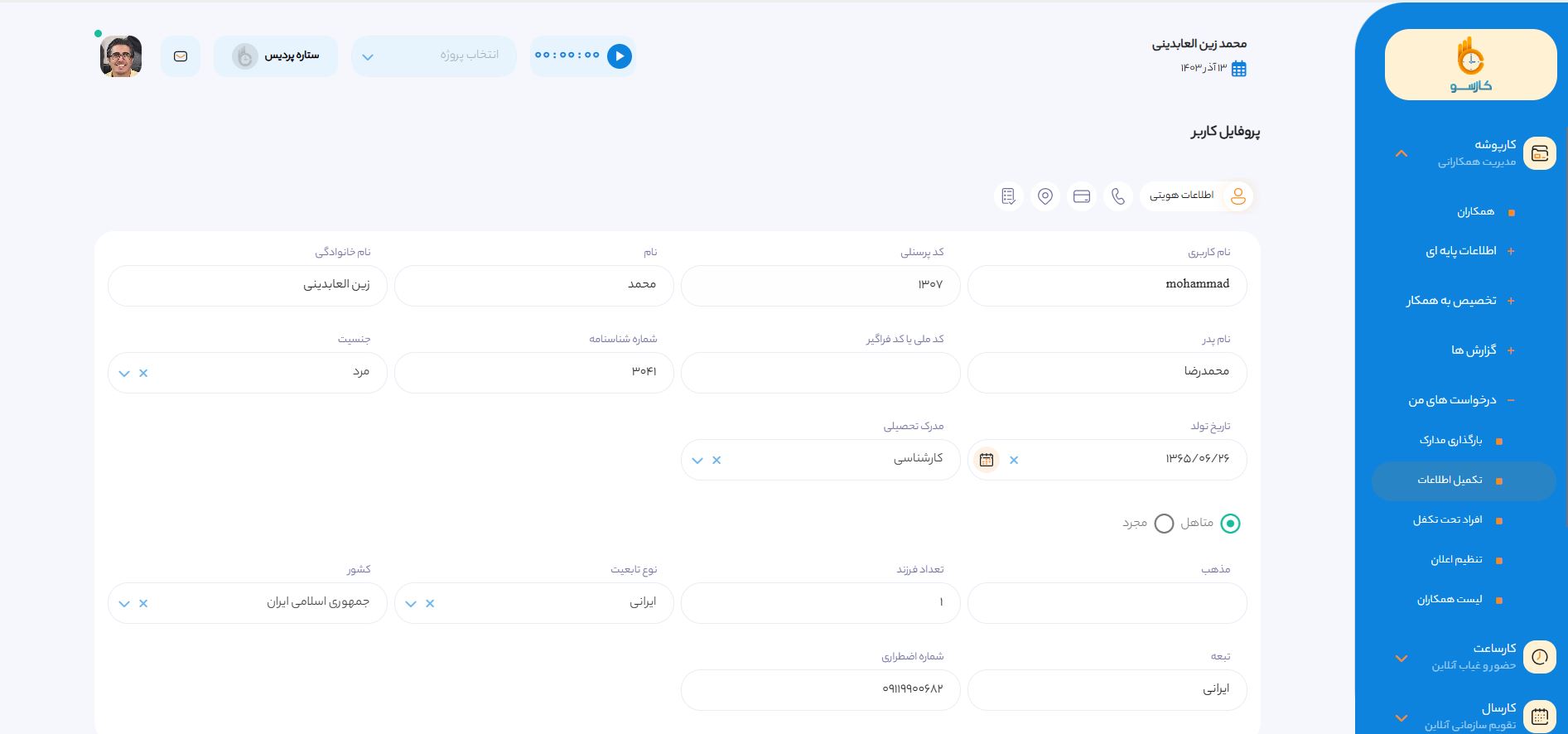 شما در سامانه پرسنلی کارپوشه اطلاعات همه کارمندان را با جزئیاتی شامل اطلاعات هویتی، بیمه ای، بانکی و آدرس به صورت ساختارمند ذخیره کنید و در در صورت نیاز به راحتی با سرچ کردن به تمام این اطلاعات دسترسی دارید.این اطلاعات همیشه روی سرور ها و دیتابیس سامانه اطلاعات پرسنلی باقی می ماند و هیچ نگرانی ای بابت گم شدن، پاک شدن یا تغییر آنها وجود ندارد اما در ذخیره سازی به صورت فیزیکی همیشه این نگرانی ها برای کارفرما و کارمندان هست.