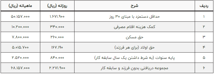 در جدول زیر تمام جزئیات افزایش حقوق سال 1402 آمده است: